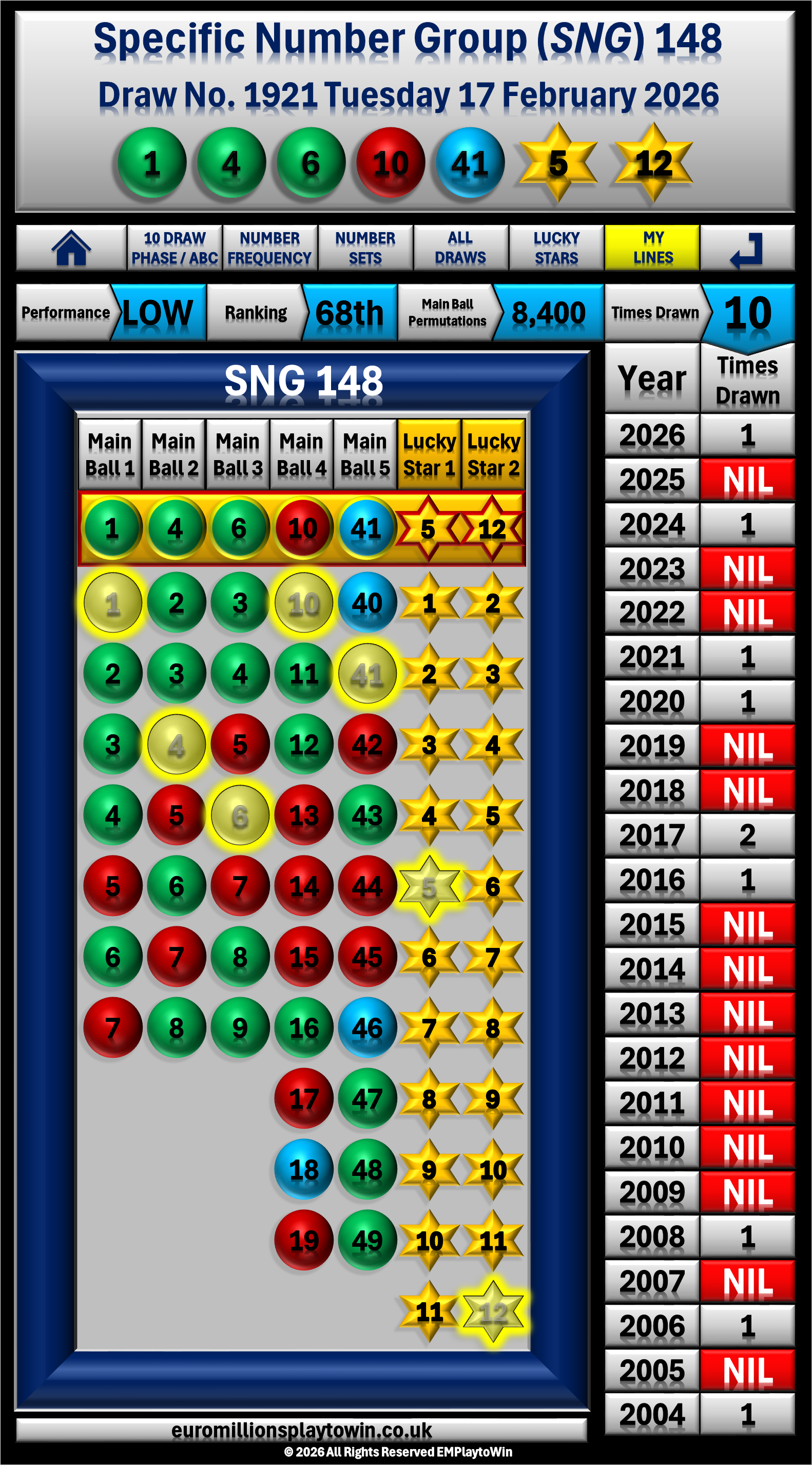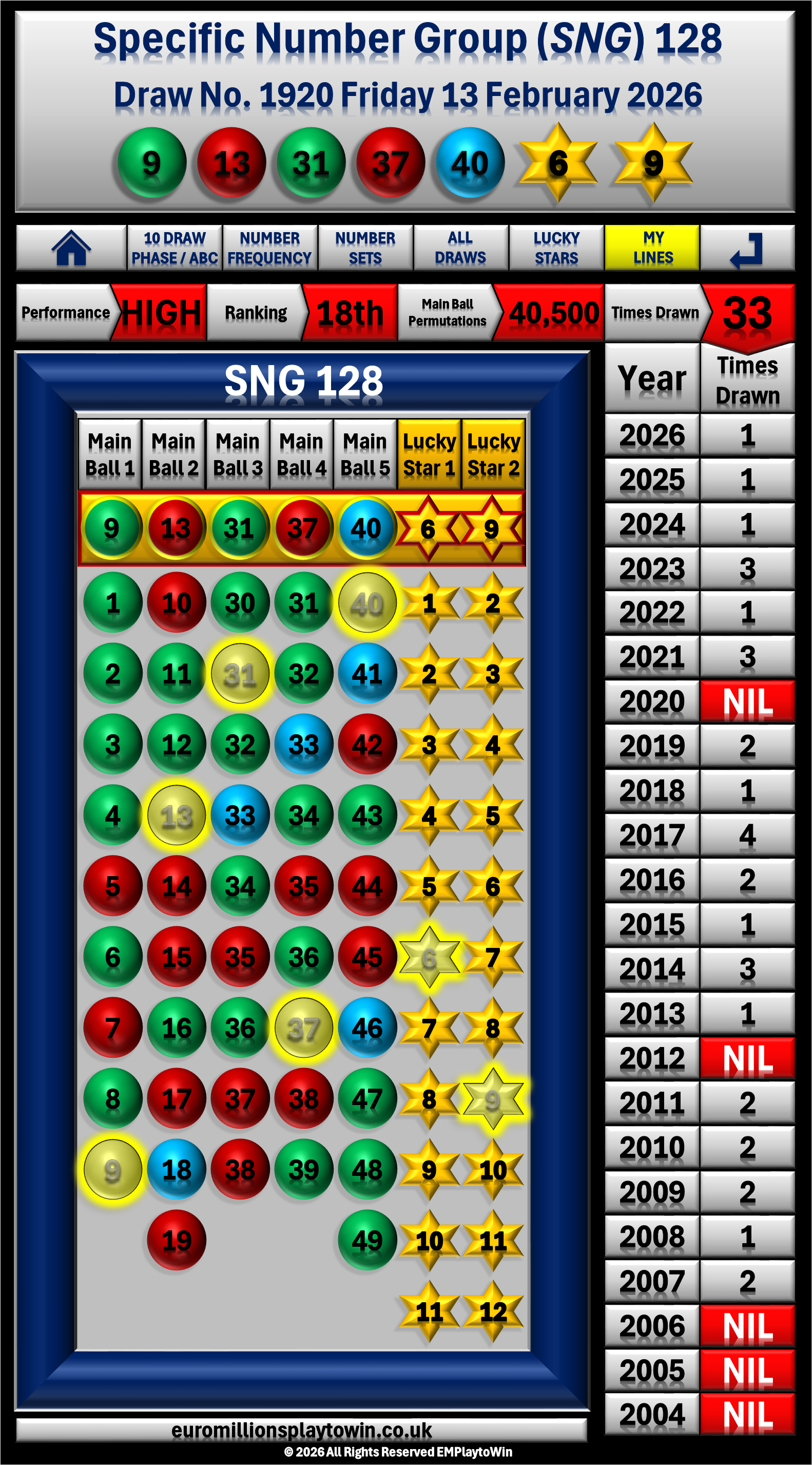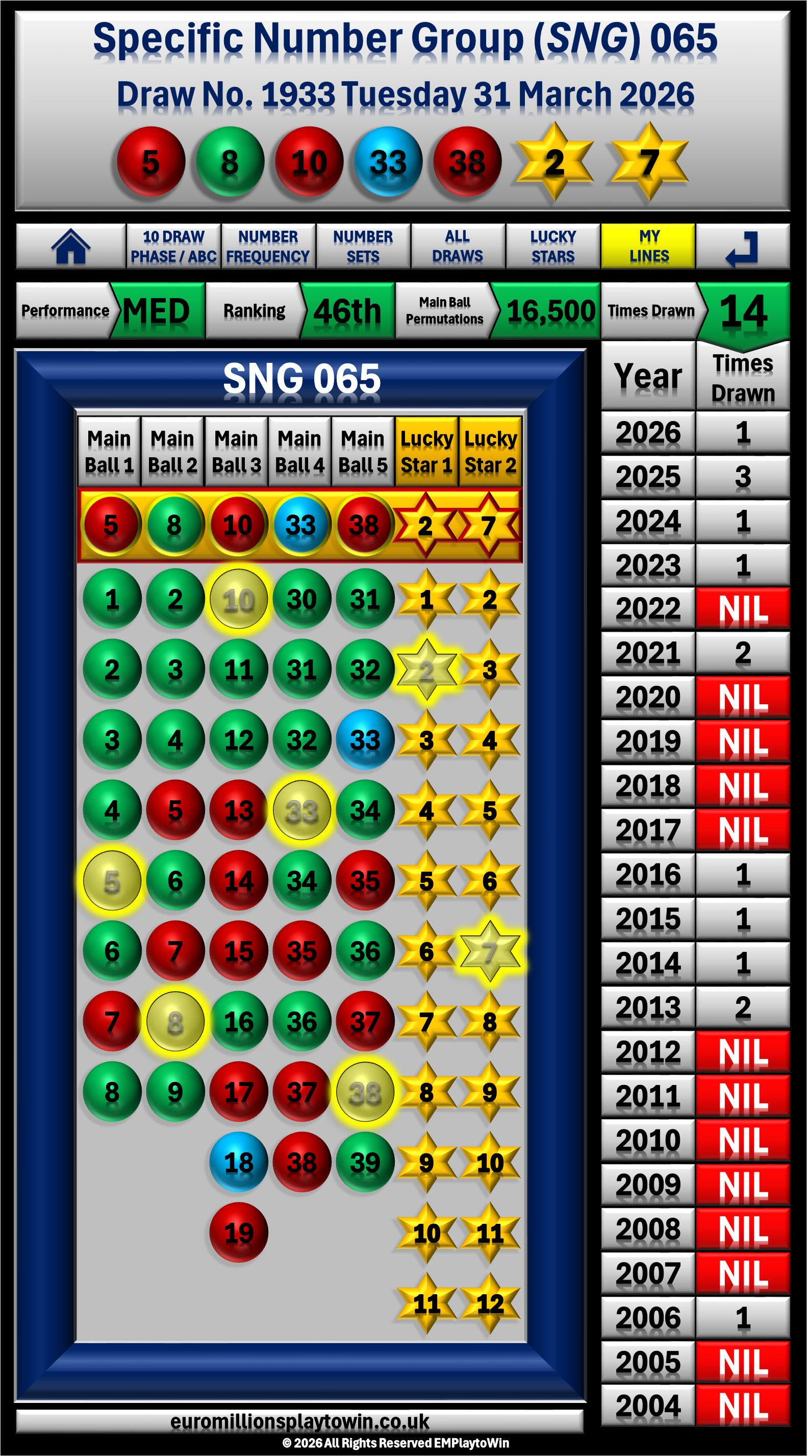 This is NOT a number prediction site, Specific Number Groups (SNG's) are a data driven strategy for number selection using unique number sequences.