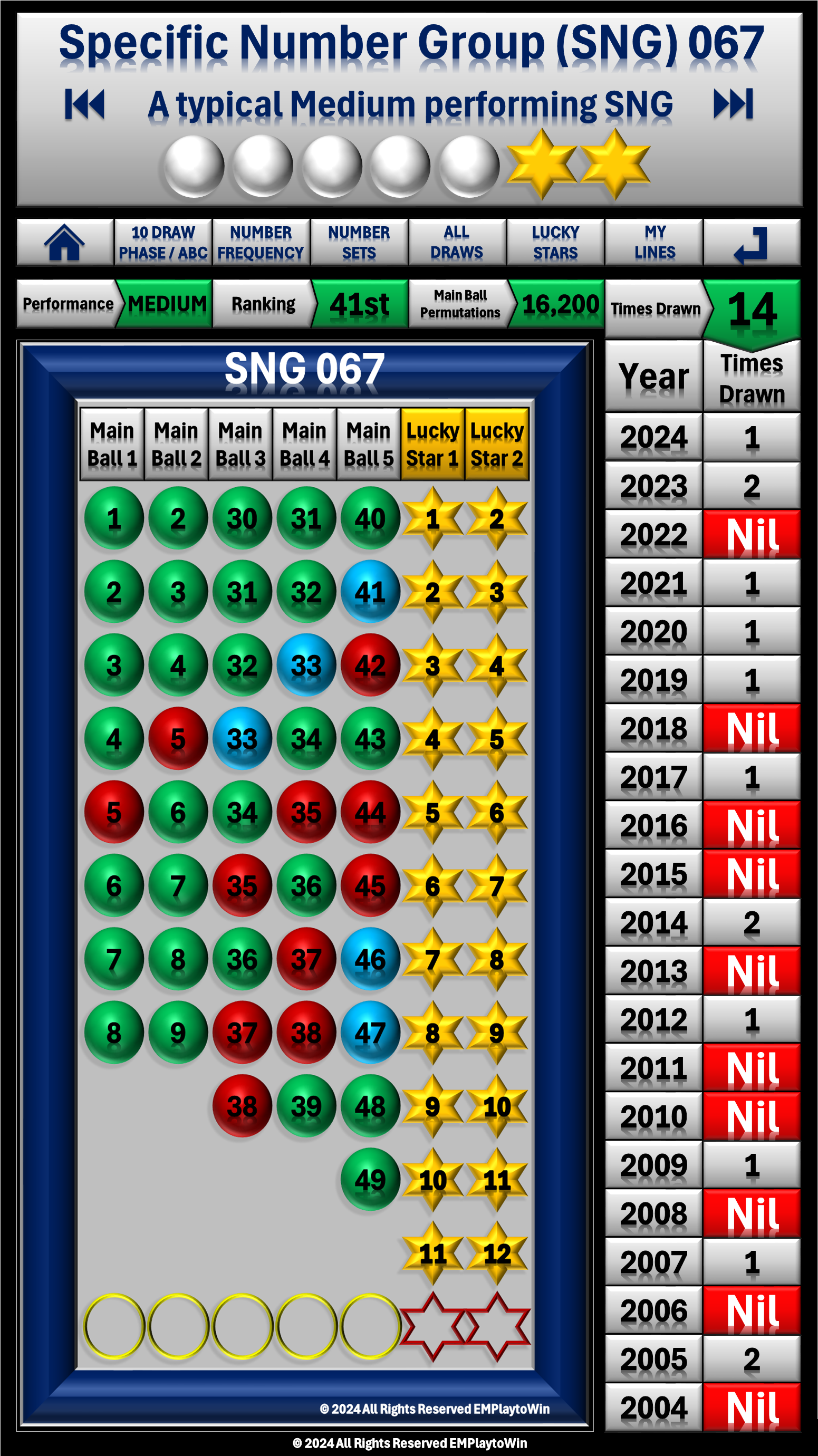 - A typical High performing SNG with a number sequence drawn generally between 1 and 3 times every year