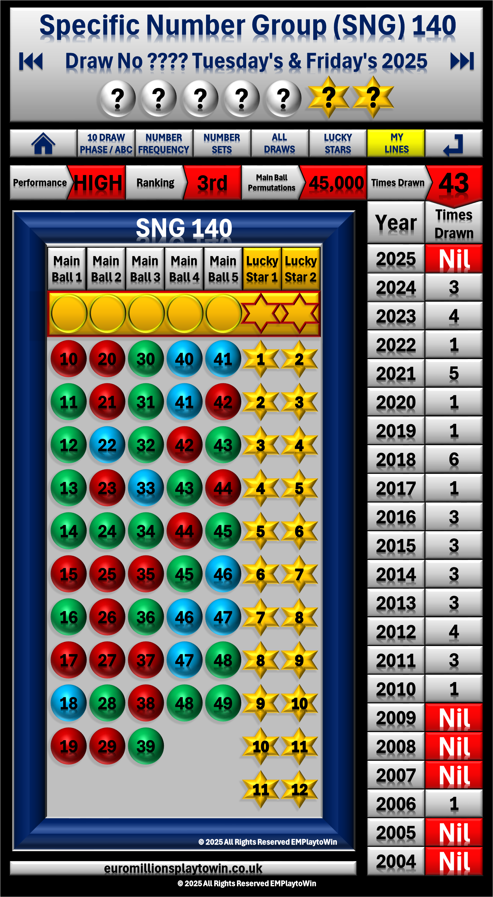 - The key to playing Euromillions successfully is to choose just ONE SNG and stick with it until it is drawn whilst using the Hints, Tips & Information within these pages to assist with your number selection.