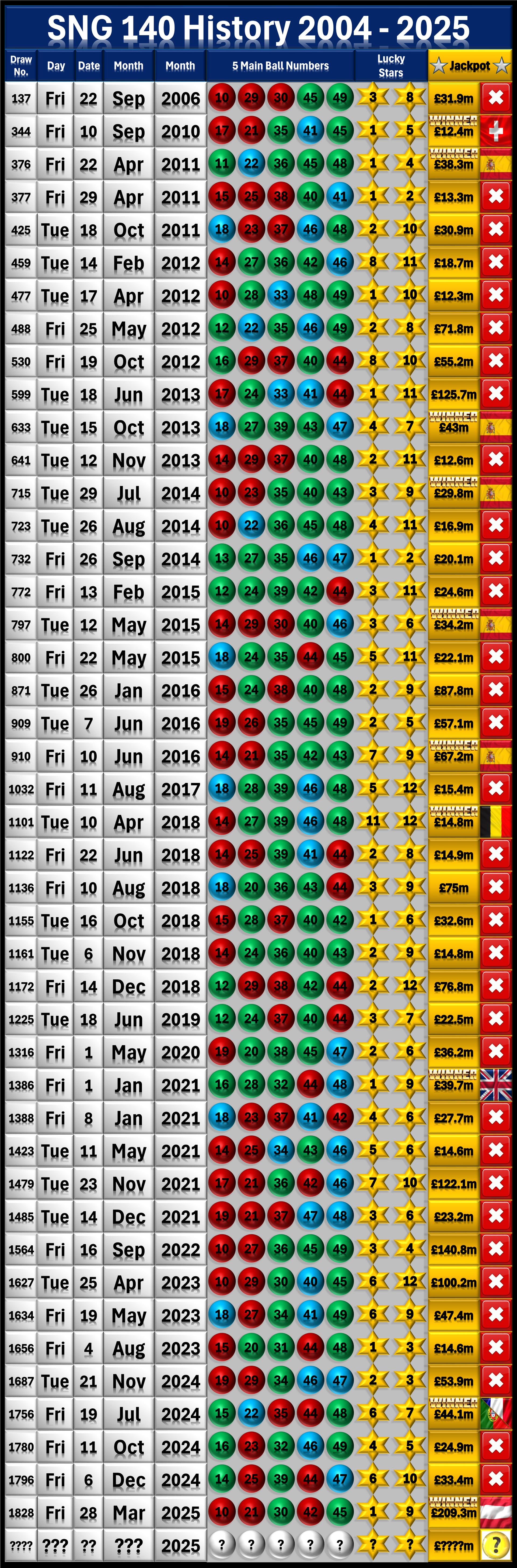 They say lightening never strikes twice and it's almost the same with lottery numbers, so just in case, here's all the previous draws when SNG 140 was drawn to make sure you're not playing previously drawn lines.