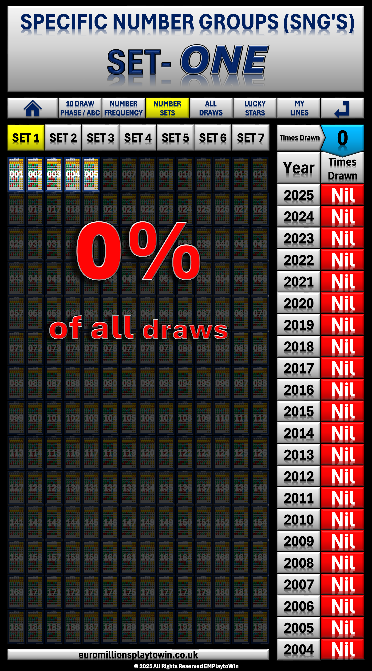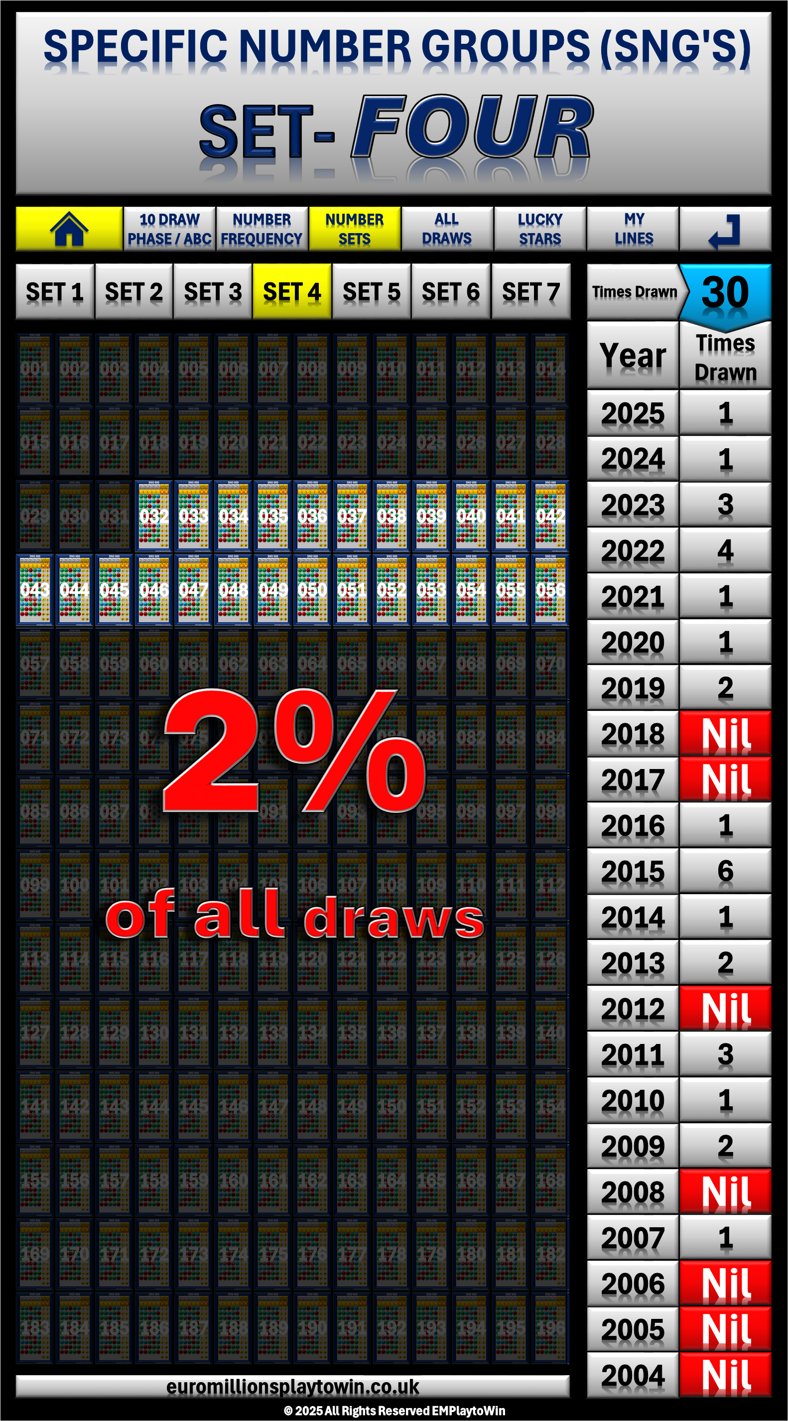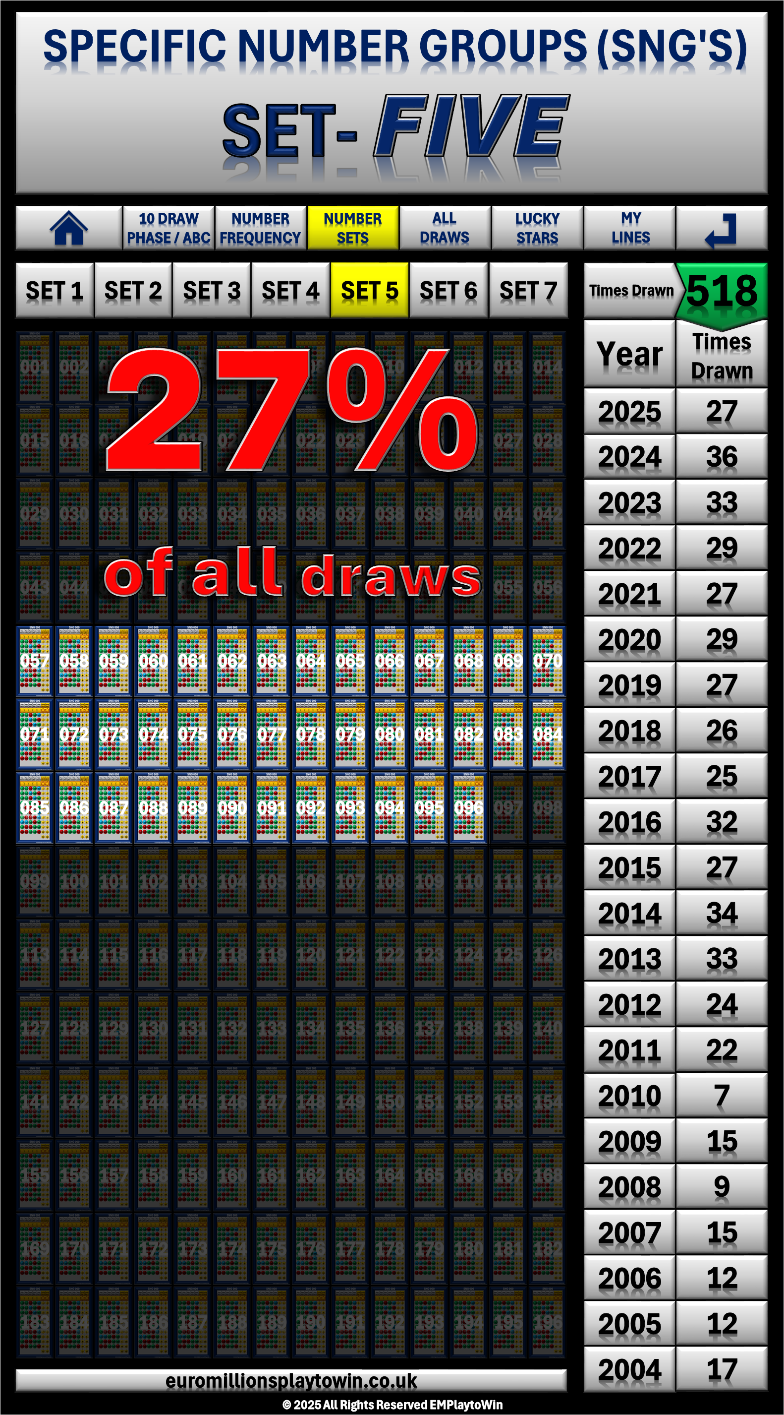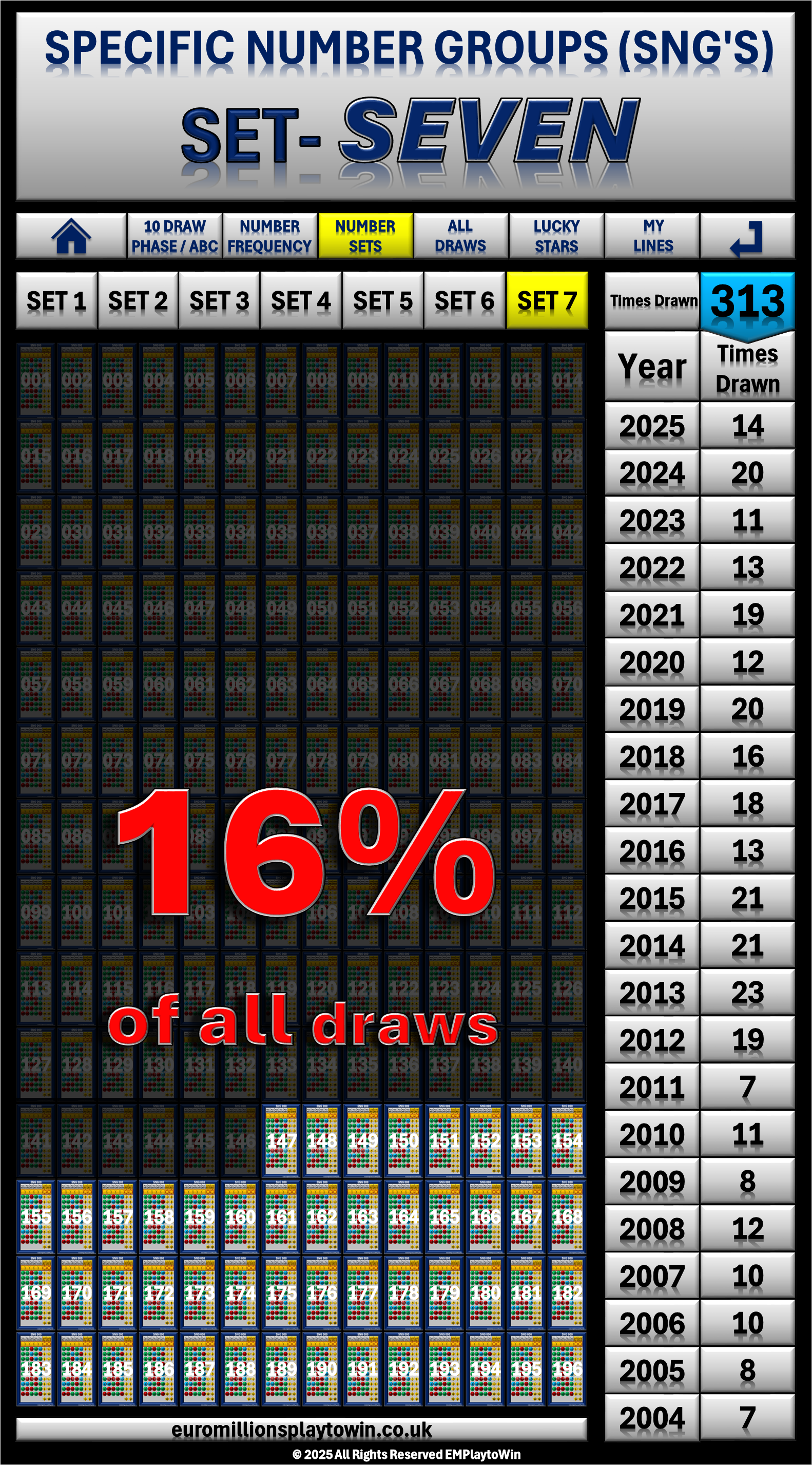 - So, that's why it makes perfect sense to select your numbers from from Set 5 or Set 6 since they are drawn more frequently than any other of the other 196 SNG's