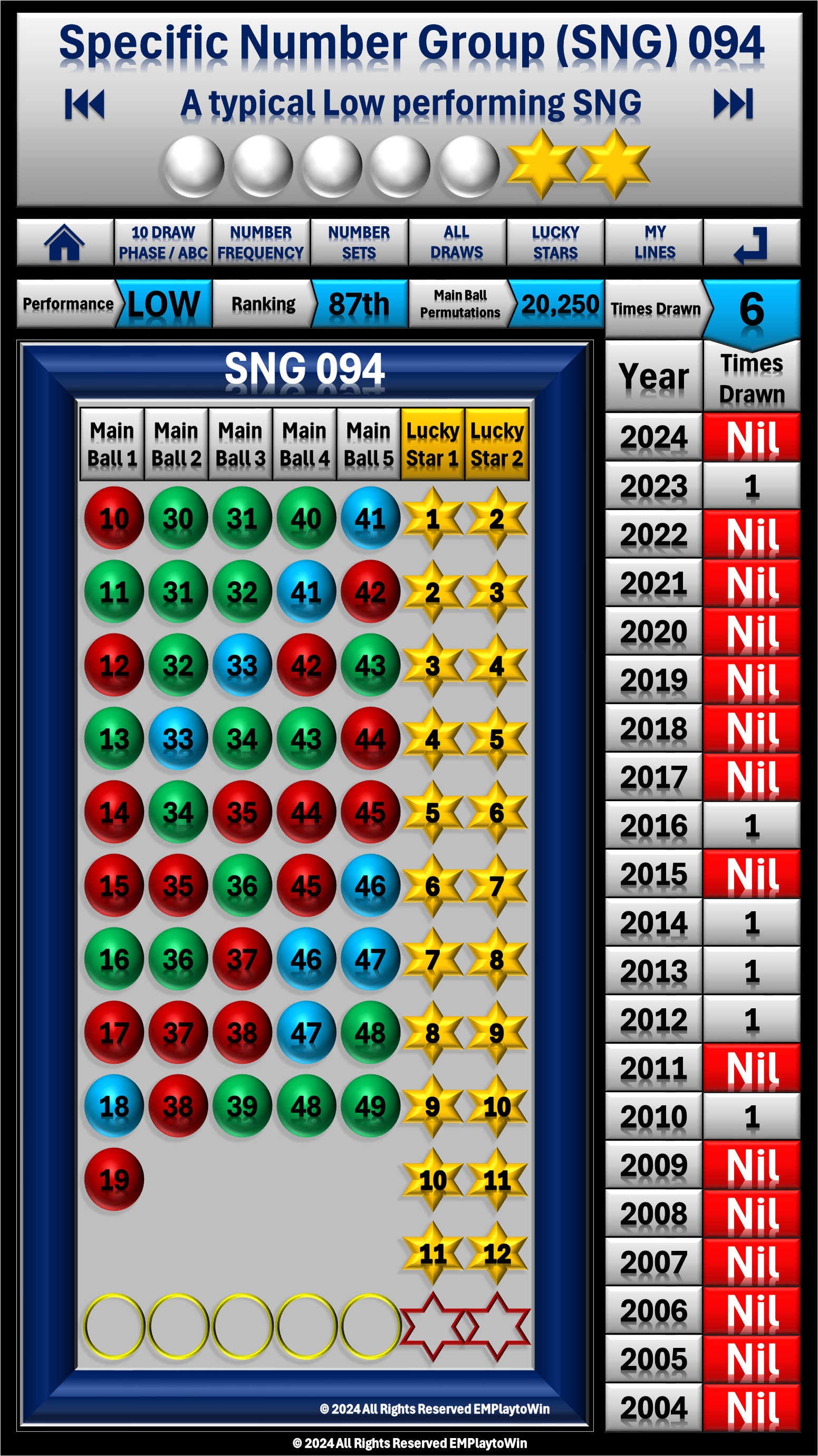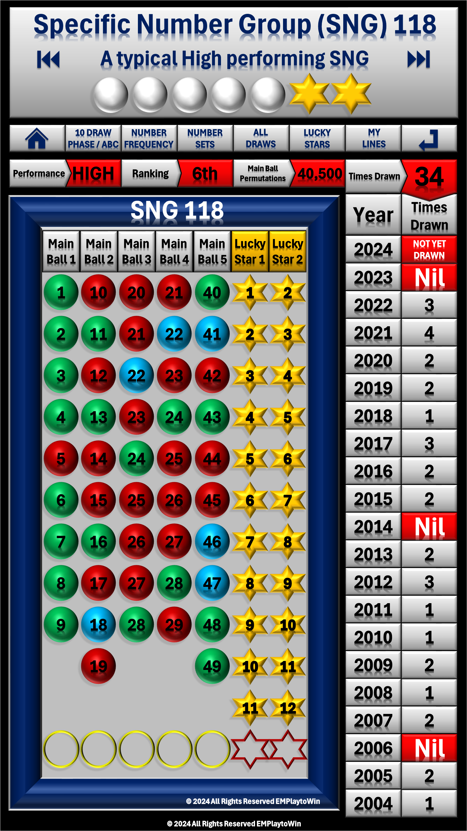 - A typical High performing SNG with a number sequence drawn generally between 1 and 3 times every year