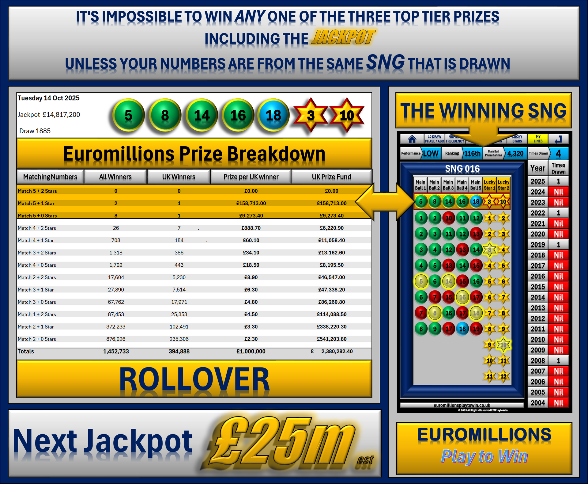 Nobody can win one of the 66 lines in the 3 top tier prize categories, which includes the jackpot, unless they're playing numbers from the same SNG that is drawn