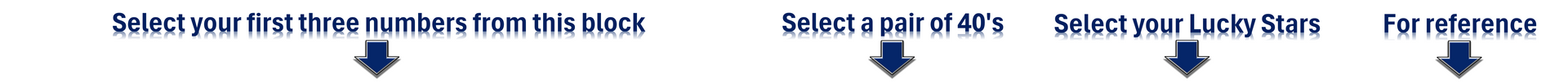 Then select a pair of 40's from Block TWO, this will give you your 5 Main Ball Numbers.
