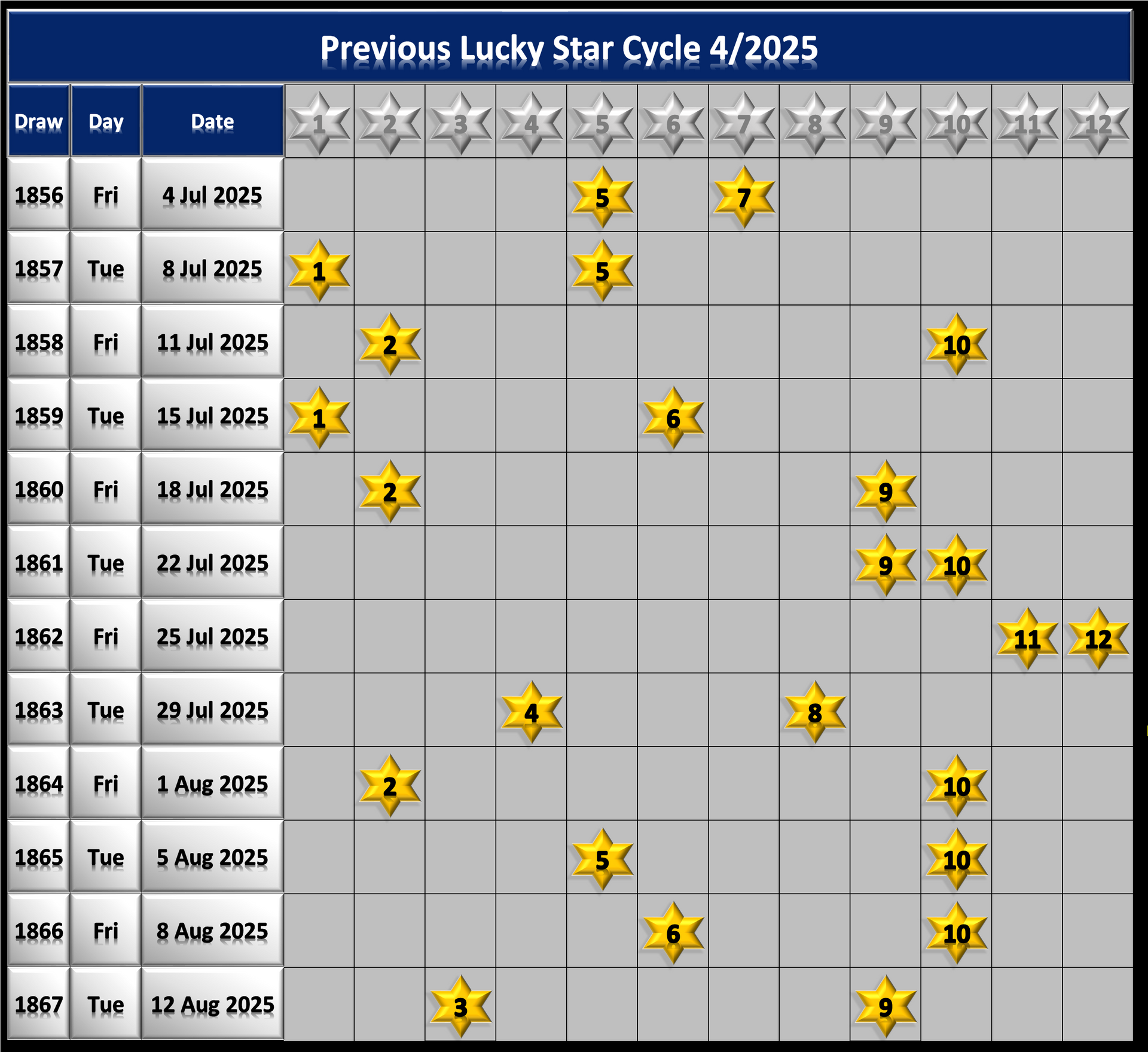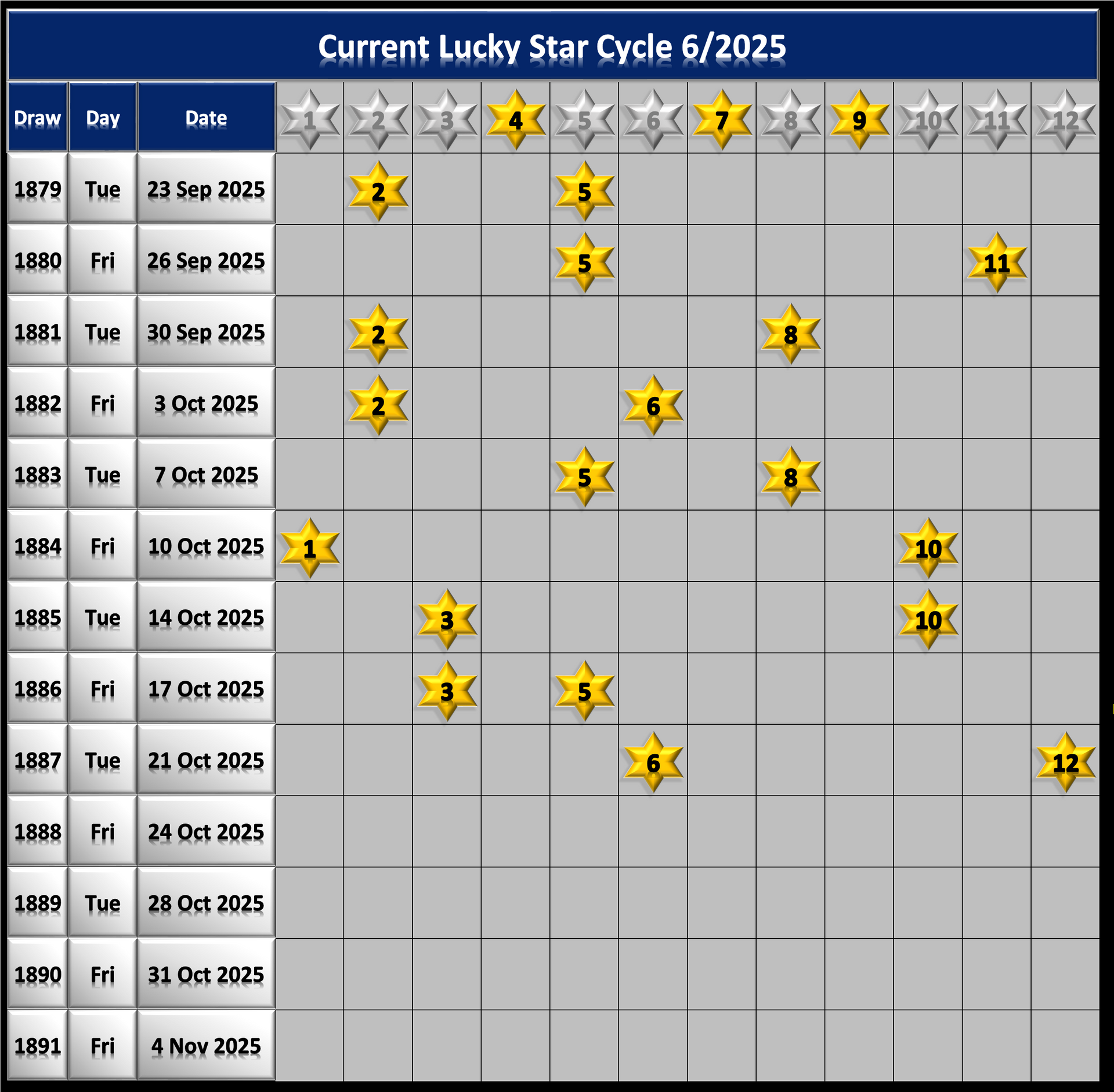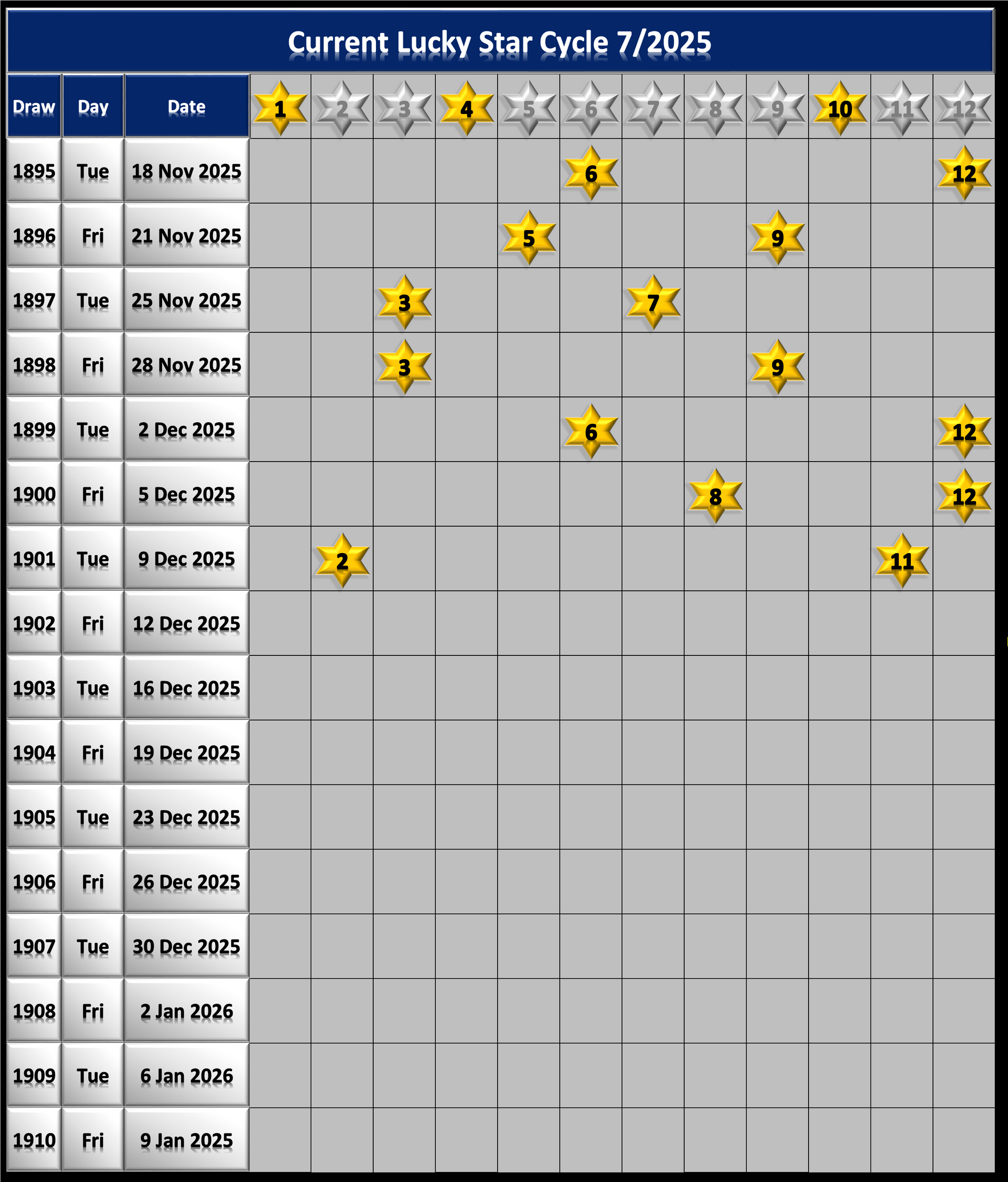 - Because there's only 12 Lucky Star Numbers they tend to cycle through quite quickly so keep an eye on the Lucky Star Cycle chart below the main graphic.