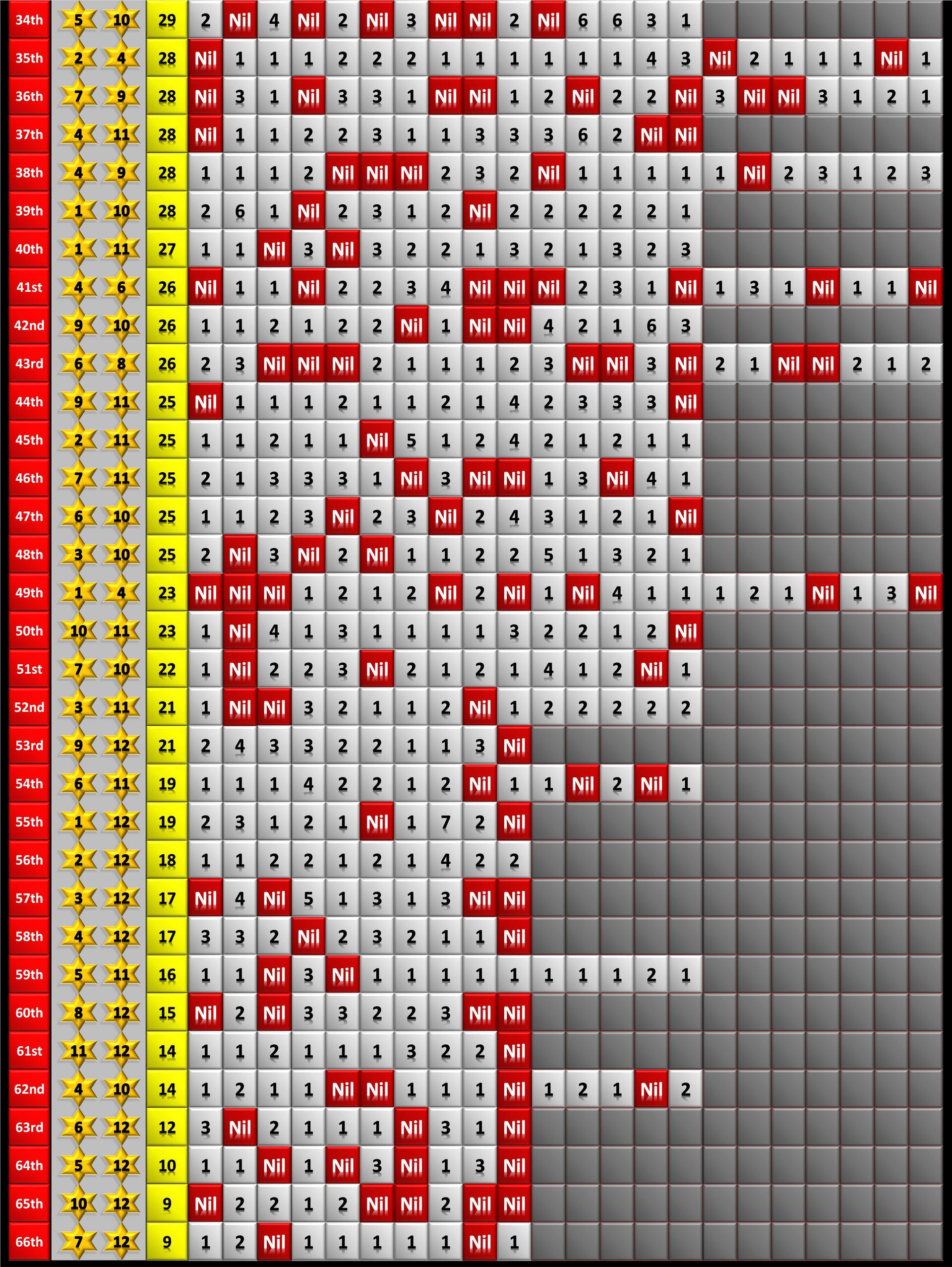 - With the introduction of No. 12 in 2016 it's better to look at the stats from that year onward rather than comparing those couples containing No. 12 in them with all of the others which go back to 2004.