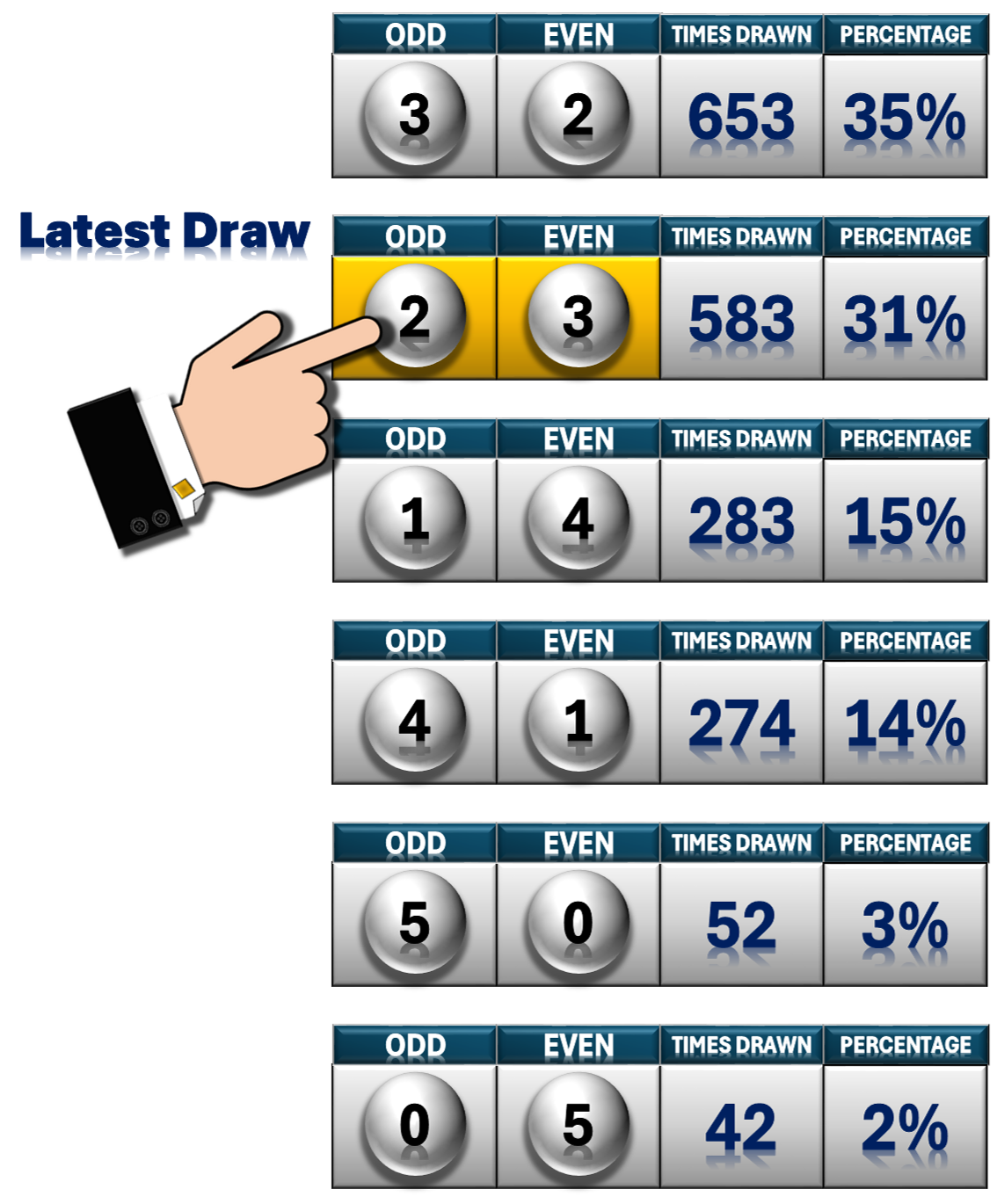 - Odd/Even- For reference note the frequency of Odd & Even numbers to help with your number selection.